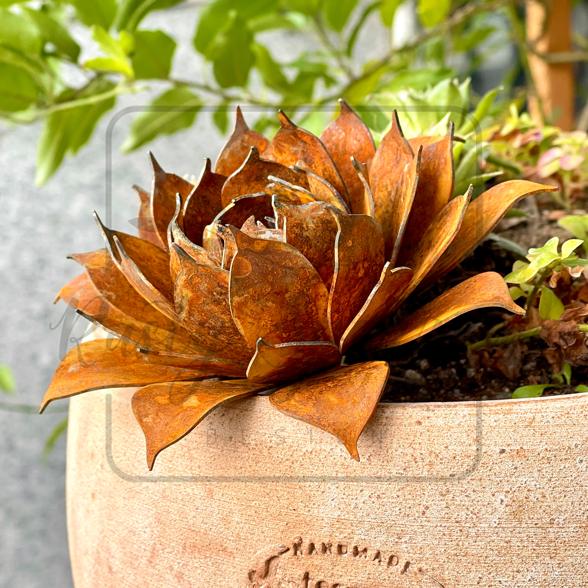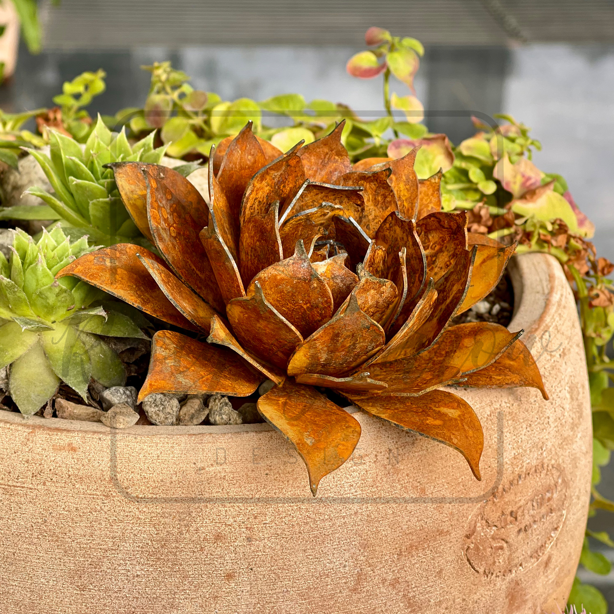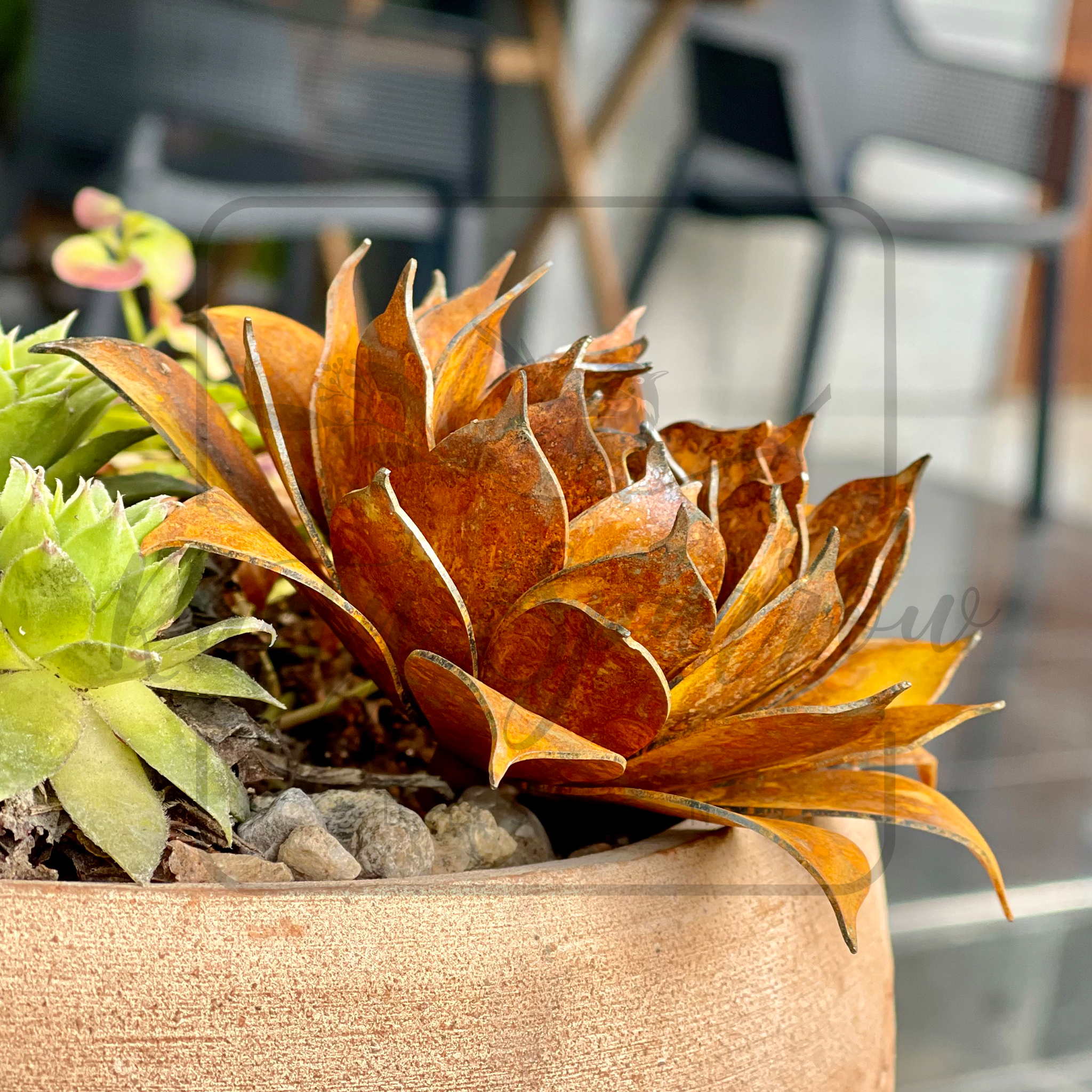 This rusted metal succulent sculpture will add a unique touch of charm to your garden, plant pot, vase, or any space your imagination envisions.